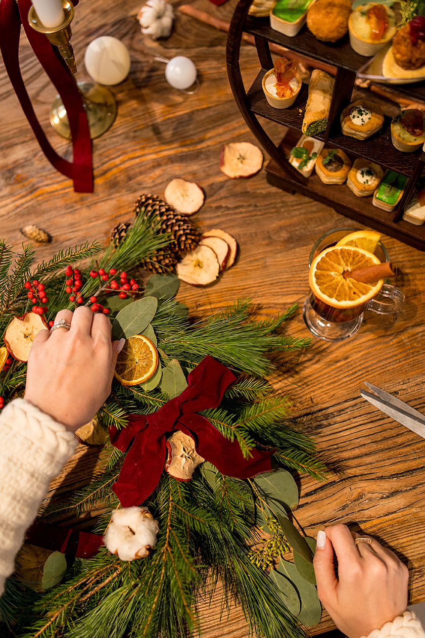 În cadrul atelierului vei crea propria coroniță de Crăciun din brad natural și decorațiuni festive, sub îndrumarea echipei Pink and Pearly, în timp ce te bucuri de: